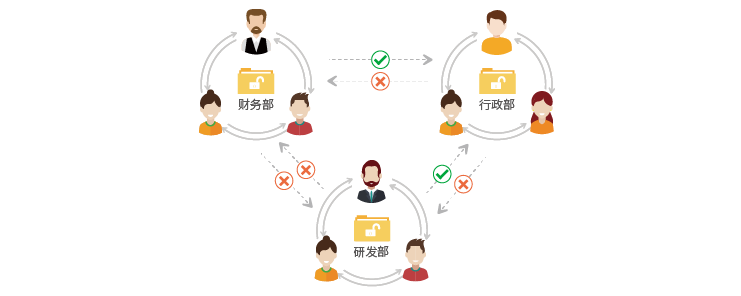 每个部门负责的工作文档性质均不同,有一些核心部门的办公文档只允许在本部门内部流转。因此,需满足不同部门之间的文档相互独立。天锐绿盾支持部门阅读权限隔离控制,能够使各个部门文档的知悉范围得到有效控制。