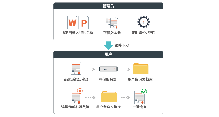 天锐绿盘为用户提供了一种桌面文件自动备份服务,用户可以将个人电脑中的重要数据定时备份到存储服务器的个人空间中。有效实现从员工桌面数据自动搜集、透明备份、版本管理到数据恢复的全方位数据安全管理。